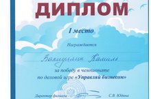20 ноября в КНИТУ-КАИ им.А.Н.Туполева состоялся III региональный Чемпионат по деловой игре «Управляй бизнесом». Гимназию №5 представляли 2 команды 9 и 11 классов: Валиуллин К., Минабутдинова Э. Бариев А., Михеева А.. По итогом игры наши ребята стали победителями и получили ценные подарки. Желаем новых побед!