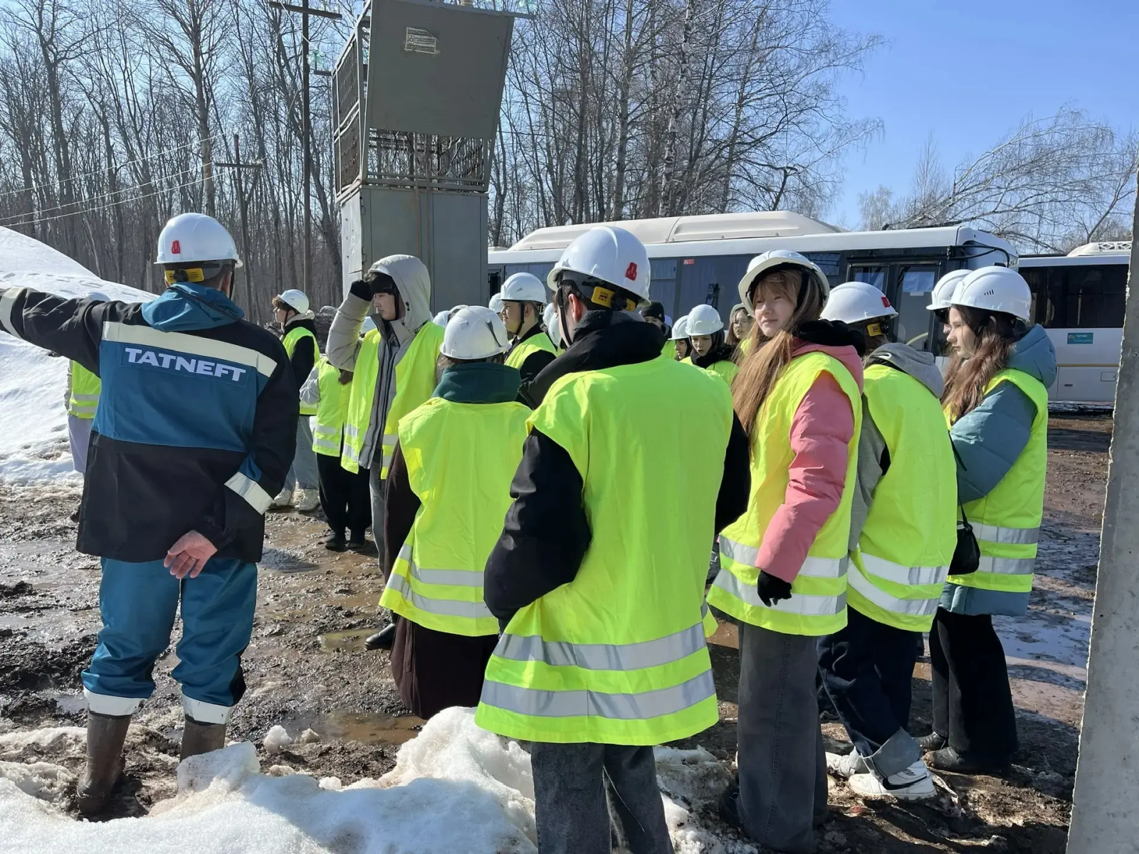 Вчера, в субботу, 21 марта 2026 года, учащиеся 8-а и 8-б продолжили изучение родного нефтяного края в рамках проекта «Индустриальный экскурсионный маршрут» от образовательной экосистемы Татнефть и посетили Центр Управления Бурением, где ребятам был показан фильм о том, как присходит непосредственный процесс бурения почвы и на какой глубине залегает нефть в Татарстане. Фильм был представлен в очень интересном формате и сопровождался подробным объяснением и вопросами ребят. Также обучающимся удалось «подсмотреть» как в реальном времени работает компьютерная операционная система связи с каждым объектом на местности. Далее, классы проследовали в двух комфортабельных экскурсионных автобусах на место установки бурильного аппарата. Нас тепло встретили на месте, в 15 км от Альметьевска, и провели познавательный экскурс в процесс работы нефтяников, занятых на этом этапе добычи нефти. Ребятам выдали каски и специальные жилеты на объекте, так как по ТБ находится без каски на этой территории нельзя.