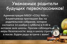 Уважаемые родители будущих первоклассников! 10.11.2020