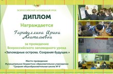 2017 год в России объявлен Годом Экологии. Одно из мероприятий этого года – Всероссийский заповедный урок. Урок посвящен заповедной системе России, которая празднует 100 лет. Целью урока стало знакомство ребят 3б, 4б, 5а, 5б классов школы №6 с понятиями «Заповедная территория», «Заповедник», об их важной роли в сохранении природного и культурного наследия нашей Родины. Уроки подготовили и провели учителя начальных классов Трунова А.А., Гарифуллина И.А. и учитель географии Рафикова Е.Г. Ребята внимательно слушали, смотрели видеоролики, выполняли групповые задания, сделали поздравительные открытки, рассуждали о том, какие виды особо охраняемых природных территорий знают дети, где были, где хотят побывать. Это мероприятие не оставила никого равнодушным.