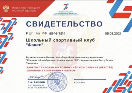 Муниципальное бюджетное общеобразовательное учреждение «Средняя общеобразовательная школа №6» г.Альметьевска Республики Татарстан
