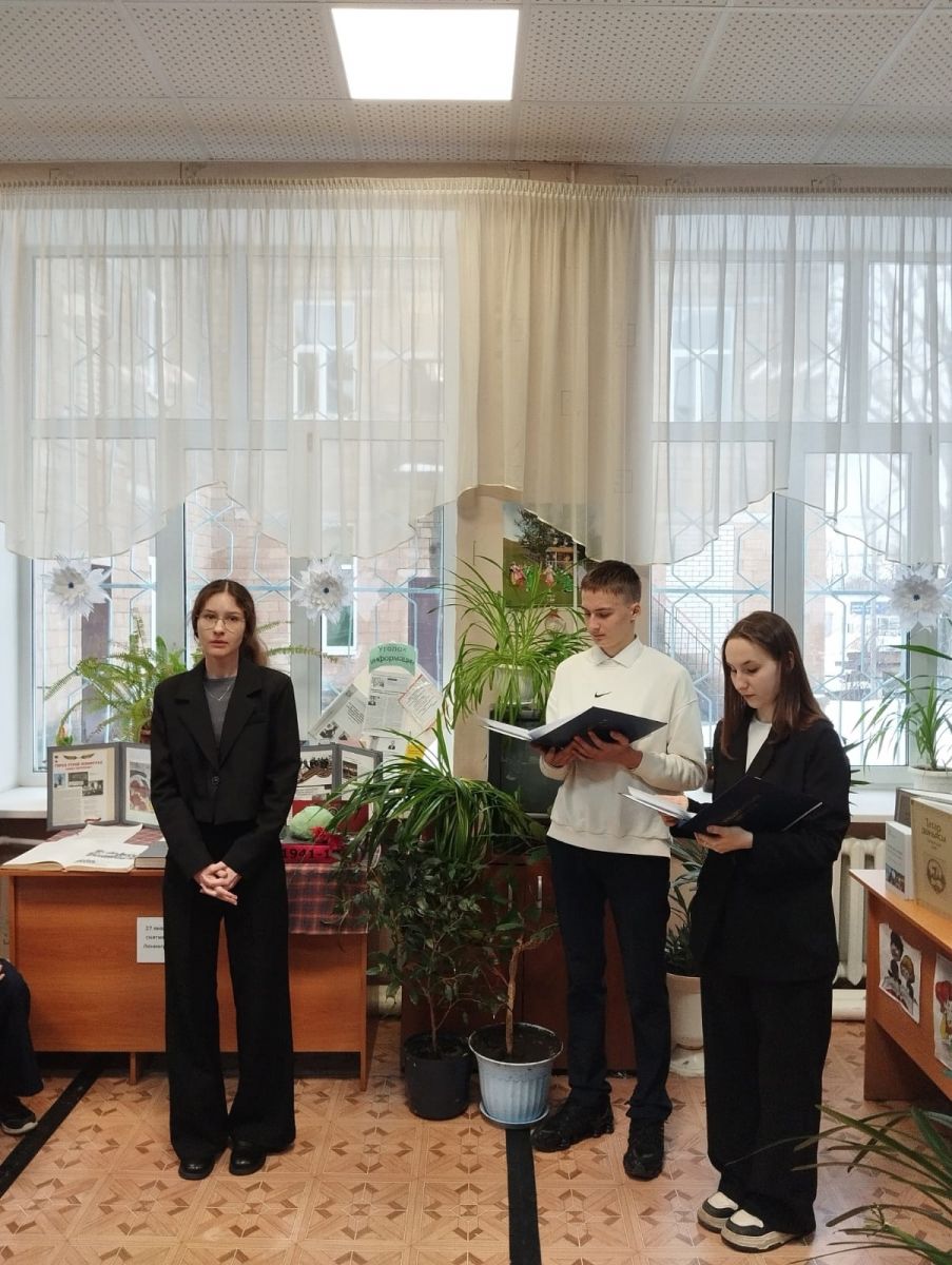 Опубликовано: 28.01.202528 января в школьной библиотеке провели конкурс стихов, посвященный снятию блокады Ленинграда. Ведущие рассказали о тяжёлых испытаниях, выпавших на долю жителей осаждённого Ленинграда, о строительстве спасительной "дороги жизни" через Ладожское озеро.Большое впечатление на детей произвел рассказ о норме хлеба блокадников. Конкурсанты проникновенно и на высокой эмоциональной ноте читали стихи, посвященные ленинградцам и воинам, защищавшим блокадный город. В завершении мероприятия почтили память воинов и жителей Ленинграда, отстоявших его и не доживших до наших дней, минутой молчания. В конце мероприятия школьники пришли к выводу, что подвиг детей блокады учит мужеству, стойкости и безграничной любви к Родине.