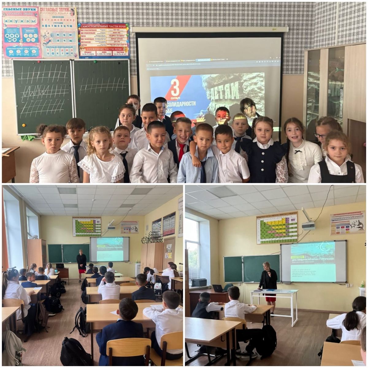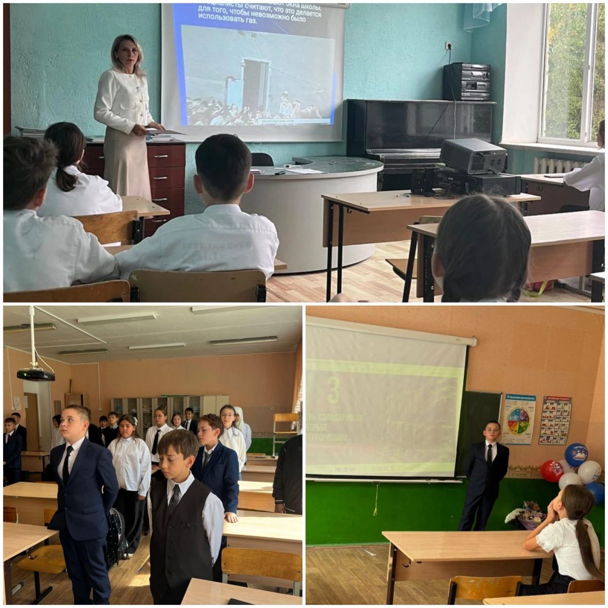 Особое внимание уделили событиям трагедии в Беслане. Советник по воспитательной работе организовала показ документальных фильмов, рассказывающих о героизме учителей и родителей, спасавших детей ценой собственной жизни.