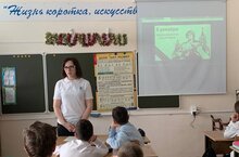 А ещё учитель музыки провёл инфоурок «Музы под огнём», рассказывающий о творчестве поэтов, музыкантов и артистов, которые вдохновляли бойцов своими произведениями в самые трудные моменты войны.