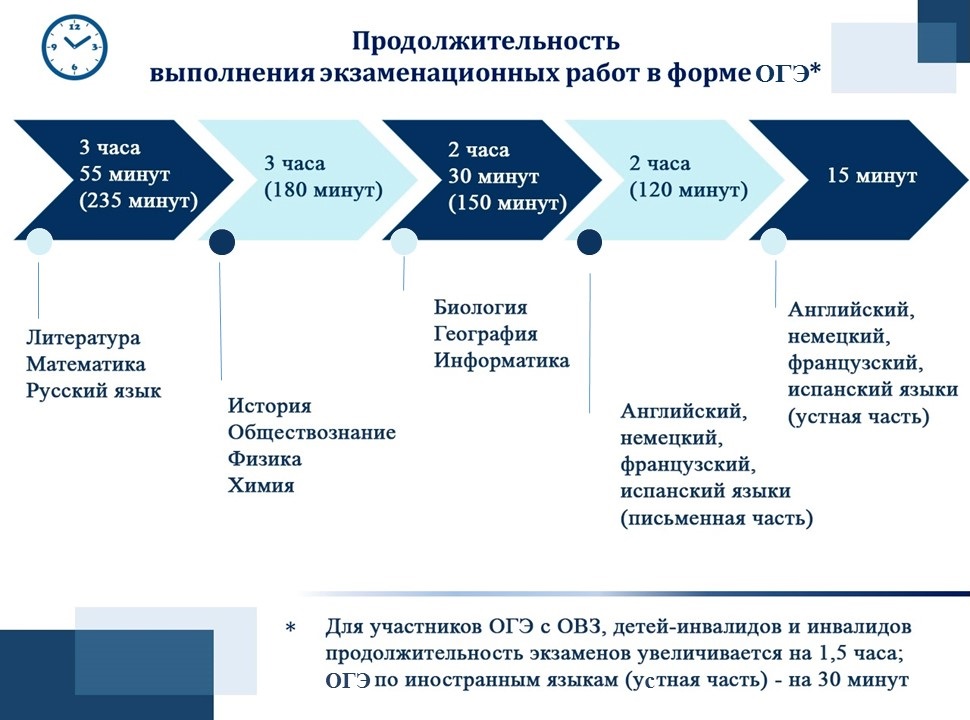 Продолжительность выполнения экзаменационных работ в форме ОГЭ/ГВЭ