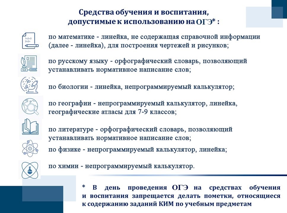 Средства обучения и воспитания, допустимые к использованию на ОГЭ/ГВЭ