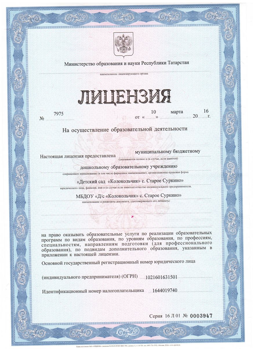 | Короткое название: | МБДОУ «Д/с «Колокольчик» с. Старое Суркино» Альметьевского муниципального района РТ |