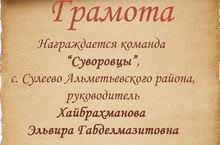 Команда 4 класса "Суворовцы"(классный руководитель Хайбрахманова Э.Г.) награждена Грамотой за участие в конкурсе "Отечественная война 1812 года" проводимая на сайте http://nachalka.com