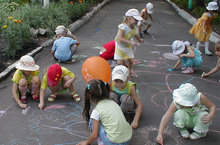 1 июня, по традиции, в нашем детском саду был подготовлен и проведен праздник для детей. Праздник начался в музыкальном зале с веселой песни, которая создавала праздничное настроение. Дети участвовали в играх, необычных эстафетах, читали стихи про безоблачное детство, пели песни про спорт и дружбу, танцевали. Праздник продолжился на улице. Где дети с огромным воодушевлением рисовали на асфальтной дорожке, пускали мыльные пузыри. На рисунках были изображены цветы, солнце, небо и т.д. Интересные конкурсы и викторины никого не оставили равнодушным.