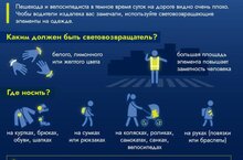 Примите меры к тому, чтобы на одежде у ребенка были светоотражающие элементы – фликеры, делающие его очень заметным на дороге. Помните в темной одежде маленького пешехода водителю просто не видно. Чем больше светоотражателей на одежде и вещах будет у вас и ваших детей, тем заметнее вы для водителей.