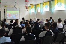 Сегодня всей школой посетили наш клуб. Смотрели фильм "Испытание аулом" Сюжет приключенческого фильма захватил внимание ребят.