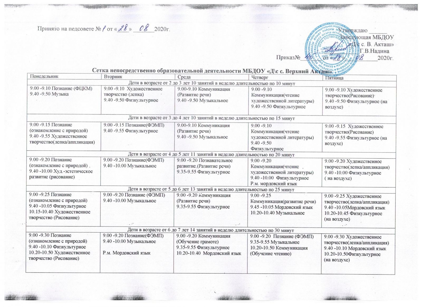 4.6. Сетка непосредственной образовательной деятельности "Д/с с.В.Акташ" на 2020-2021 уч.год