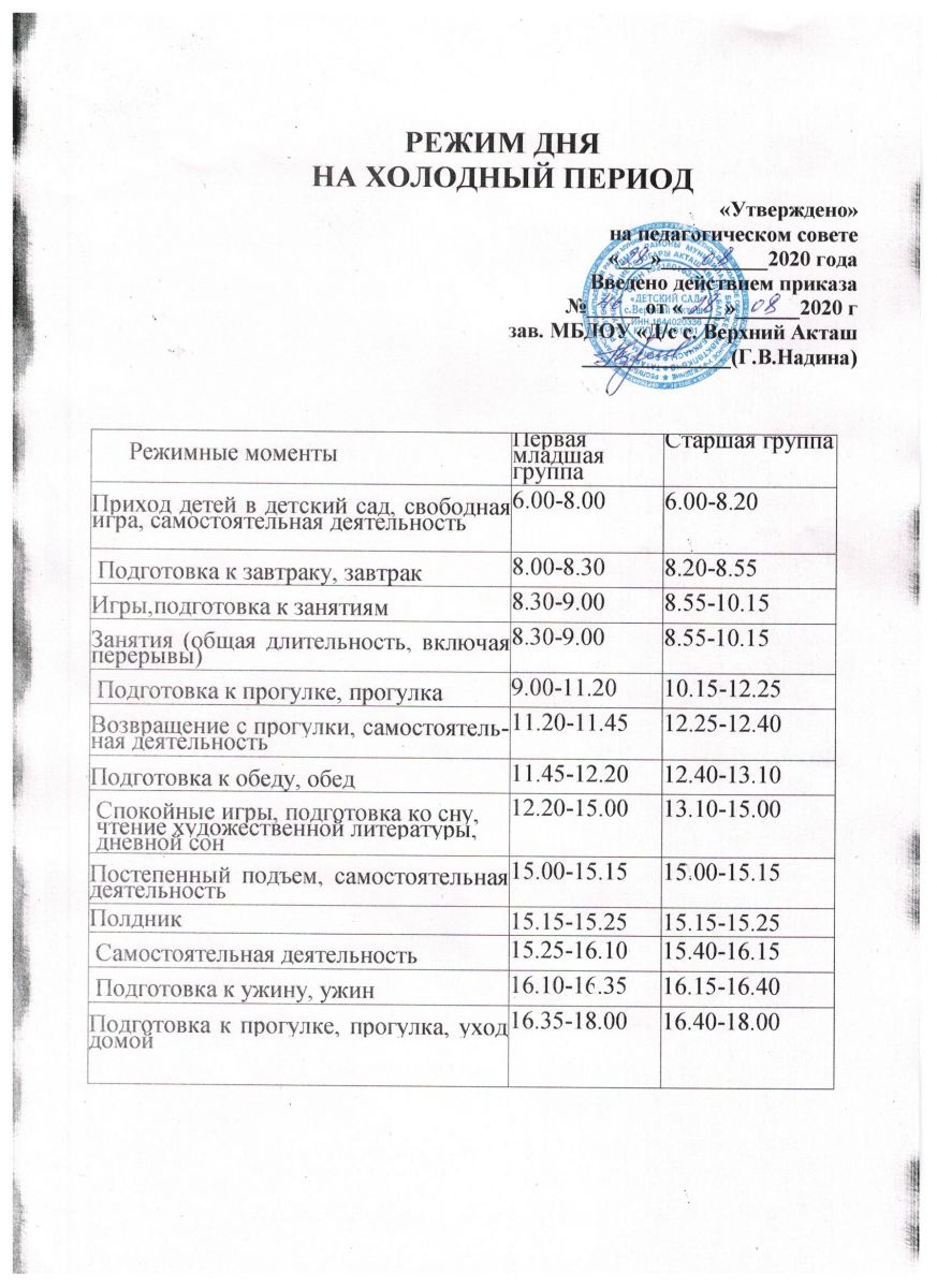 4.5. Режим дня на холодный период 2020-2021 учебный год