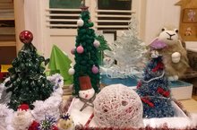 Прошла выстовка елочных украшений и поделок к новому году.Вот такие игрушки и поделки изготовленные своими руками приносили детвора из дома.