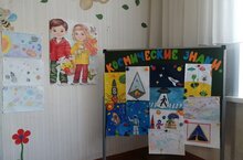 12 апреля в нашем детском саду, прошла выставка рисунков среди детей и родителей, на тему: "Космические знаки", посвященная ко "Дню Космонавтики".