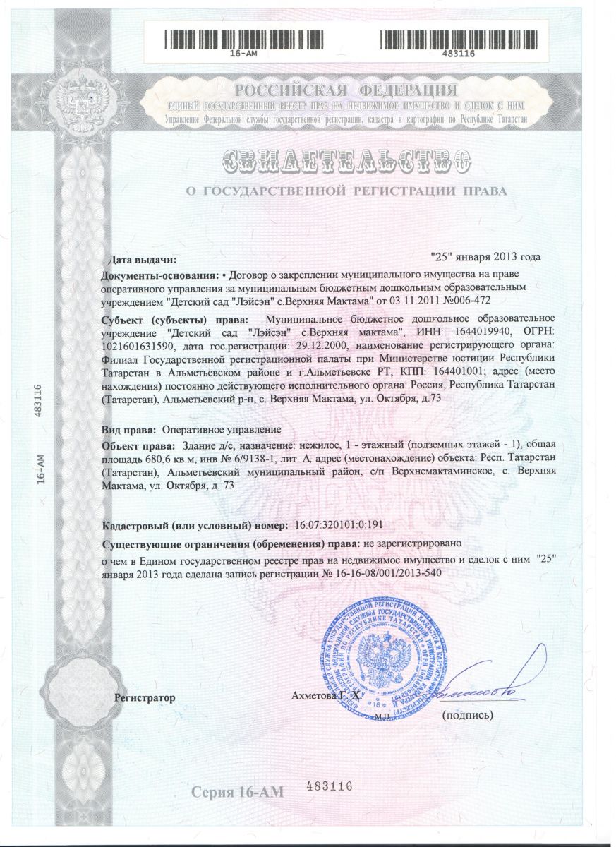 | Адрес: | 423440, Республика Татарстан, Альметьевский район, с. Верхняя Мактама, ул. Октября, д. 73 |