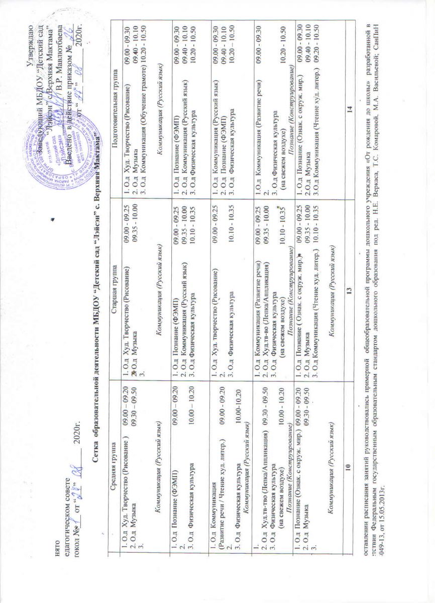 Сетка образовательной деятельностина 2020-2021 учебный год ст._гр.