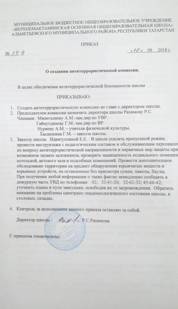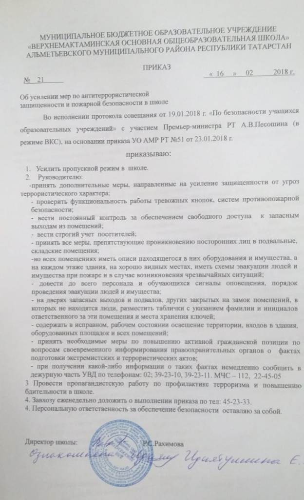 Приказ об усилении мер по антитеррористической защищенности и безопасности в школе