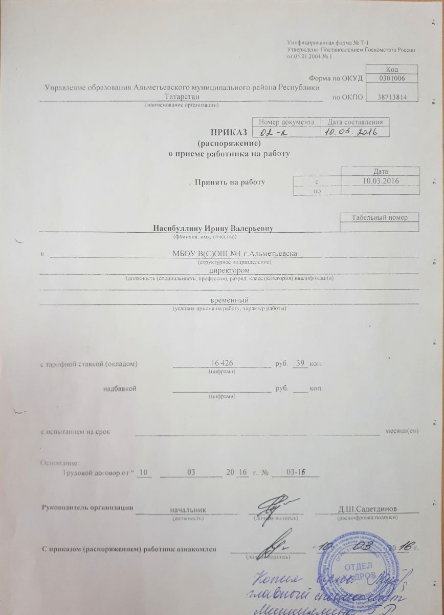 Приказ о назначении директора