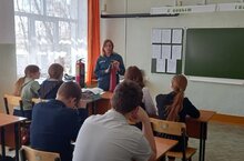 В рамках Месячника охраны жизни и сохранения здоровья школьников была проведена беседа сотрудниками ПЧ-77.Онирассказали обучающимся о средствах пожаротушения, показали элементарные навыки борьбы с огнем, научили обучающихся пользоваться огнетушителями, повторили правила эвакуации из здания школы.
