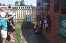 Лагерьда тәрбияләнүчеләр үзләренең бабаларын һәм авылдашларын искә алдып авыл мәдәният йорты янындагы обелискка венок куйдылар.