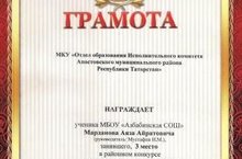 31 марта 2017 г. в Апастовской средней школе состоялся муниципальный этап Всероссийского конкурса чтецов имени Г.Тукая, посвященный 110 летию со дня рождения великого поэта татарского народа. Наши учащиеся Валиуллина Я. ученица 11 класса заняла второе место, Хайруллина Г. ученица 6 класса заняла третье место. Молодцы!!!