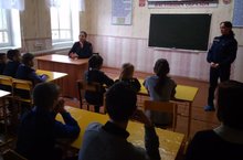 В школе прошла встреча с сотрудником МЧС Тихоновым П.С. . Он призвал учащихся быть осторожными с огнем.