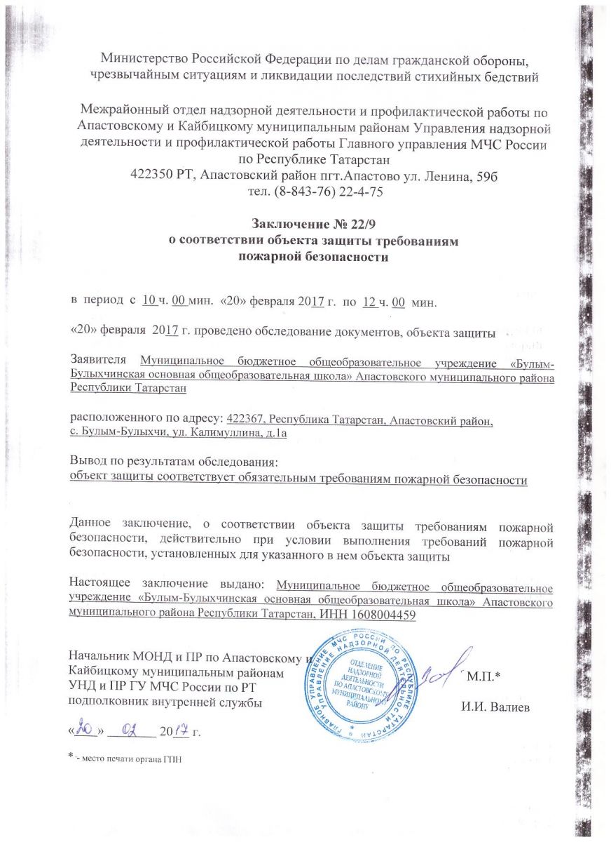 Заключение о соответствии объекта защиты требованиям пожарной безопасности 2017 г.