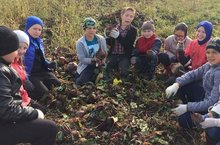 Сентябрьская погода порадовала нас тёплым солнечным деньком и мы отправились собирать урожай на пришкольные участки.Школьники убирали урожай морковки и свёклы.