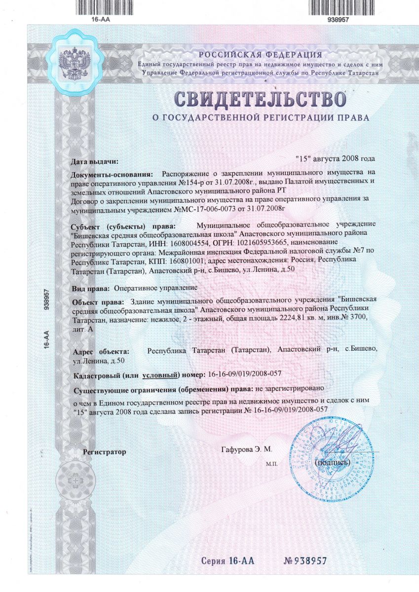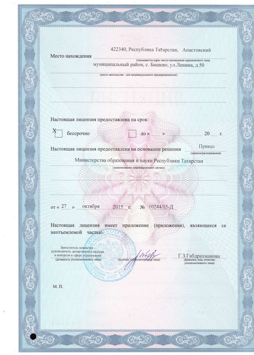 | Адрес: | 422340, РТ, Апастовский район, c. Бишево, ул.Ленина д.50 |