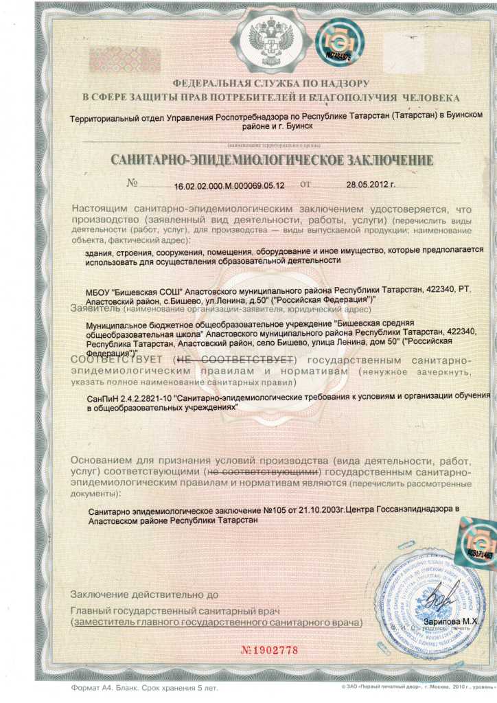 Санитарнои-эпидемиологическое заключение