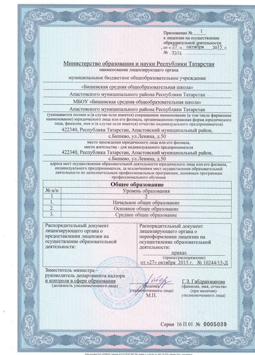 | Короткое название: | МБОУ "Бишевская СОШ" Апастовского муниципального района Республики Татарстан |