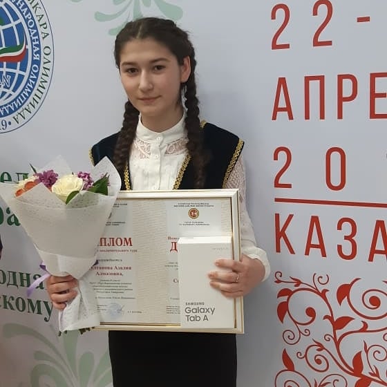 Ученица 8 класса Султанова Азалия А. стала победителем VII Международной олимпиады по татарскому языку (Учитель - Нургалиева Лейсан И.)