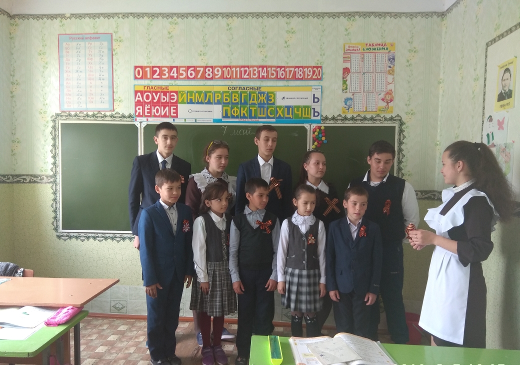 7 мая в школе Волонтеры провели акцию "Георгиевская лента" с учащимися 3 класса.Они рассказали им об истории геогриевской ленты.