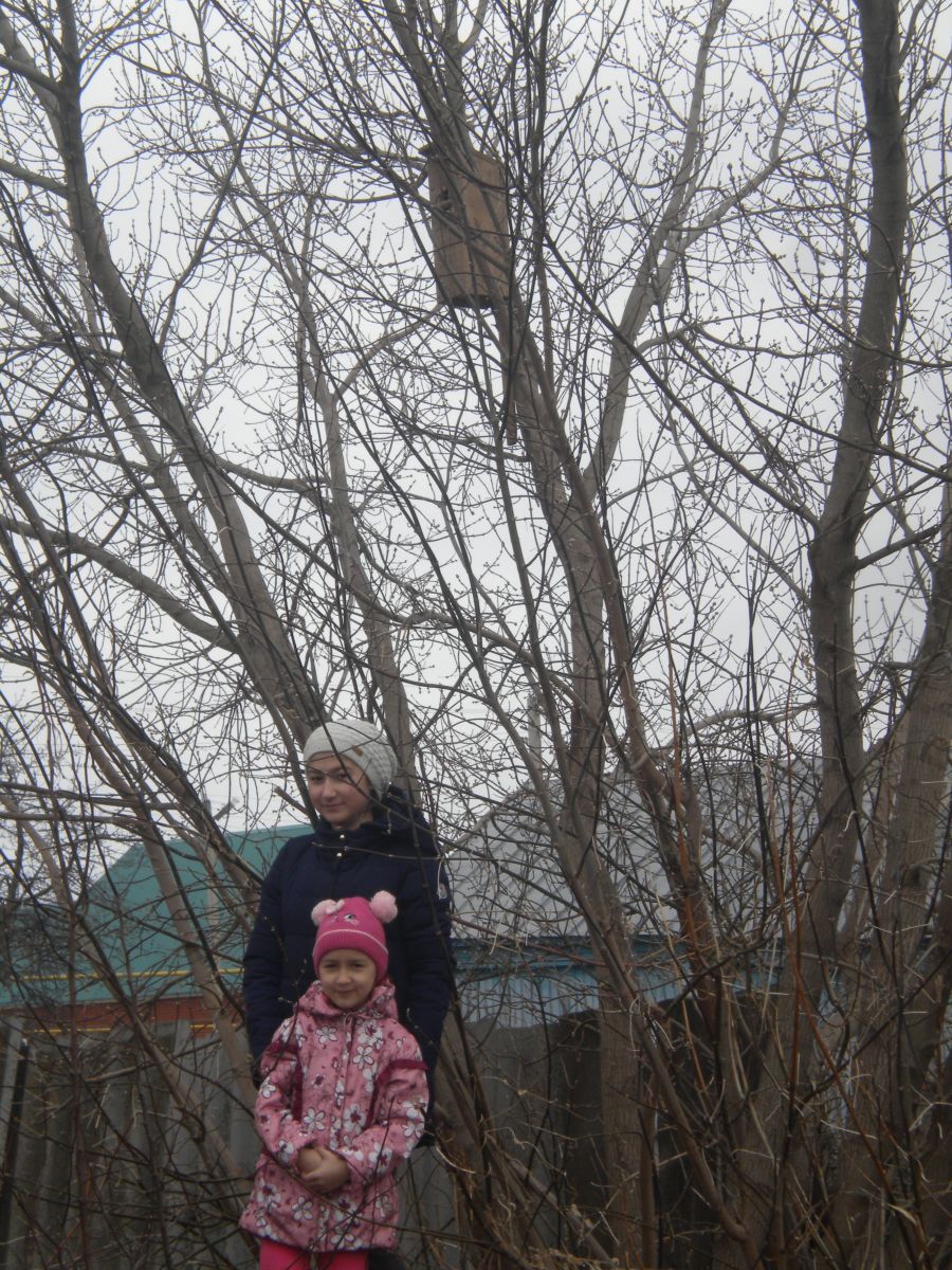 Все ученики школы подготовили жильё для наших пернатых друзей. Скворечник приготовили и Султанова Азалия с сестренкой Эндже.