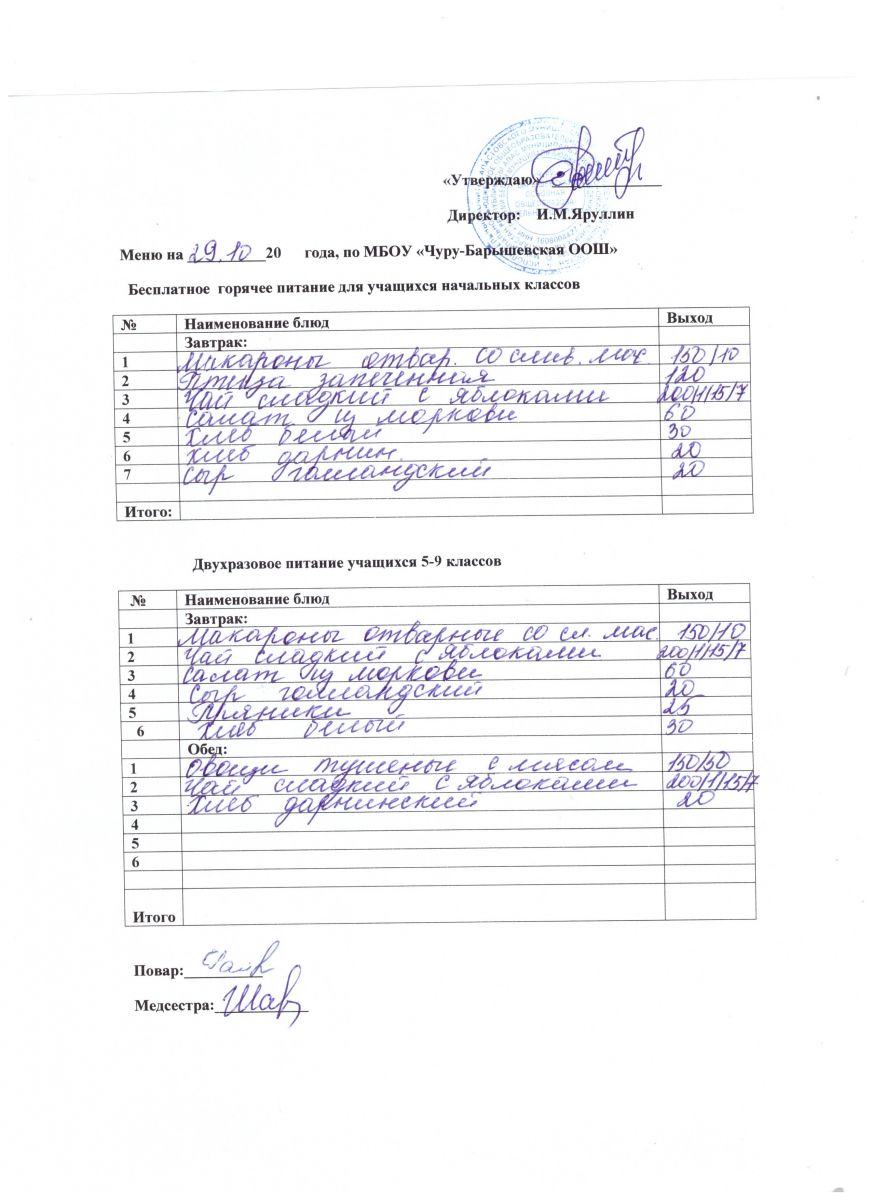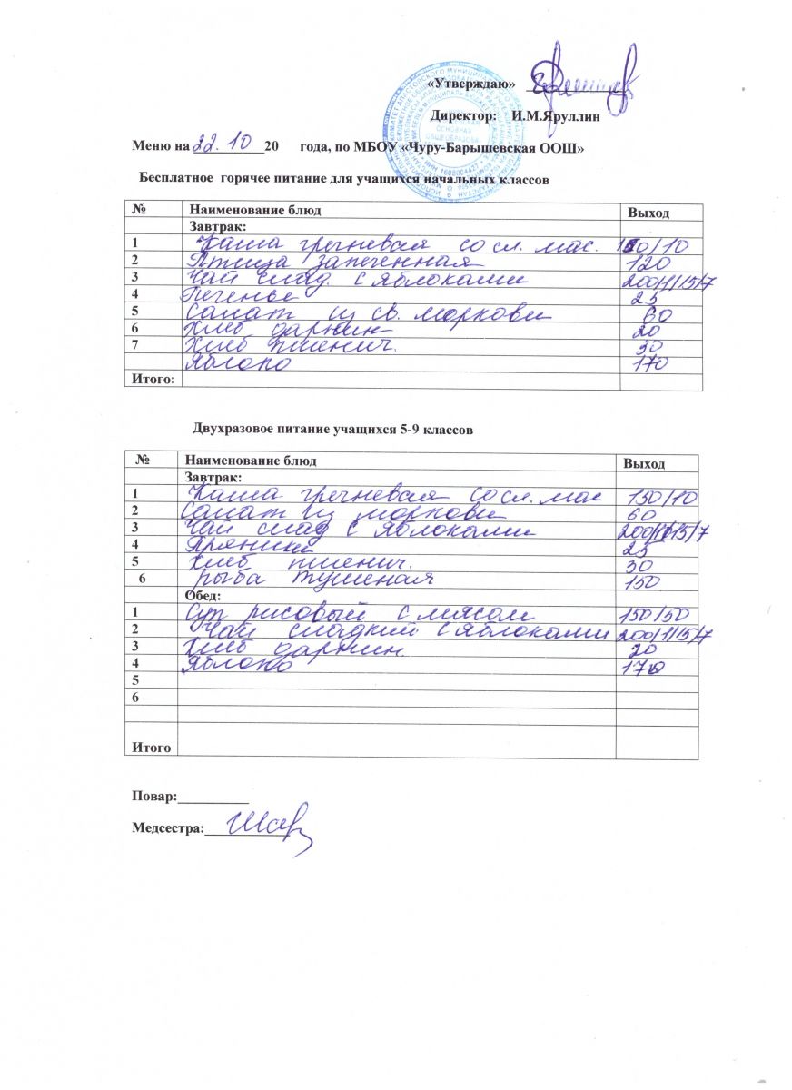 Меню на 10 октябряМеню на 12 октября Меню на 13октября Меню на 14 октября Меню на 15 октября Меню на 16 октября Меню на 17 октября Меню на 19 октября Меню на 20 октября Меню на 21 октября Меню на 22 октября Меню на 23 октября Меню на 24 октября Меню на 26 октября Меню на 27 октября Меню на 28октября Меню на 29.10 Меню на 30.10 Меню на 31.10