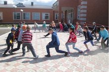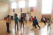 Урамда коеп яңгыр яуса да, укучылар мәктәп спорт залында гимнастика, спорт уеннарыннан тәм таптылар.