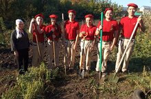 Они привезли овощи, из пришкольного участка и копали огород, но и отдавая таким образом дань уважения военнослужащим.