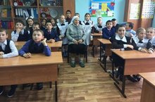 Тәхәвиеа Эльмира җитәкләгән 4 сыйныф укучылары, гомерен балаларга белем бирүгә багышлаган ветеран укытучы Закирова Сария апа белән кызыклы очрашу үткәрделәр.Сария апа балаларның әти-әниләренә генә тугел,ә дәү-әти, дәү-әниләренә дә математика фәненнән белем биргән.Ул балаларга үзенең балачагы,мәктәп еллары турында сөйләде,хәзерге мул тормышның кадерен белергә өндәде,яхшы киңәшләр бирде.