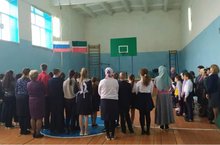 25 апреля по всей России прошли патриотические линейки с поднятием флага под гимн России и Татарстана. Почетное право поднимать флаги дали самому старшему учителю нашей школы.