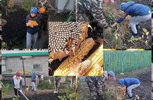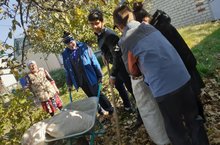 В честь Дня пожилых людей, учащиеся 5 класса поздравили Валиеву Раузу с праздником и оказали ей помощь в уборке осеннего изобилия в детском саду