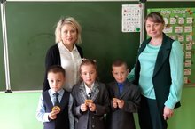 Укыту - тәрбия эшләре буенча директор урынбасары Хәйбуллина Ф. Ф. беренче сыйныф укучыларына уткайтаргыч элементлар һәм "Дөрес туклану турында сөйләшү" диелгән эш дәфтәрләре тапшырды.
