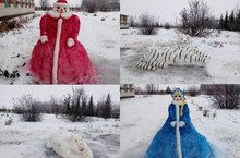 Во дворе школы появились снежные фигуры.