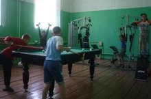 Бүген лагерьның 5нче көне. Тәрбияче апларыбыз белән бергәләп без авылыбызның мәдәният йортында урнашкан тренажор залында булдык.