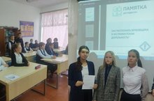 Обучающимся раздали памятки "Что нужно знать о последствиях заведомо ложных сообщений об актах террора" и "Как распознать вербовщика в экстримическую деятельность?"
