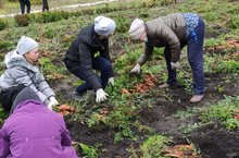 Учащиеся Деушевской ООШ собрали с пришкольного участка овощей. Выращенные за лето овощи разнообразят питание в школьной столовой.