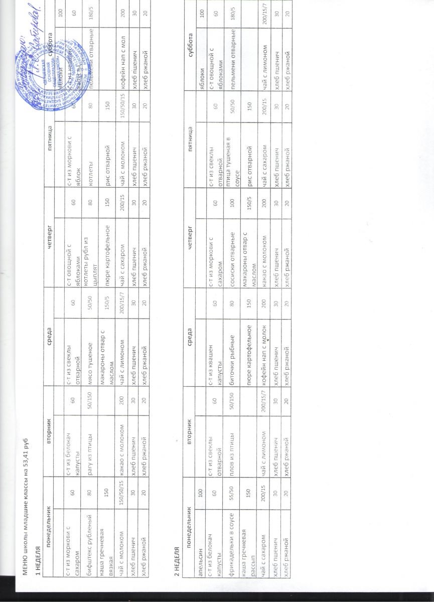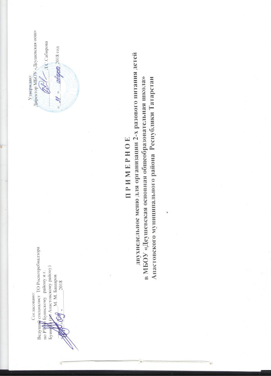 Примерное двухнедельное меню для ОУ 2-х разового питания детей в МБОУ "Деушевская ООШ"