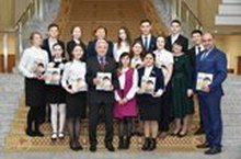 Встреча с председателем Государственного Совета Республики Татарстан 19.04.2017 Наши учащиеся Фируза Садриева, Ильнур Шамсутдинов, Гульназ Закиева в составе юных корреспондентов журнала "Ялкын" приняли участие на встрече с председателем Государственного Совета Республики Татарстан Ф.Х.Мухаметшиным.