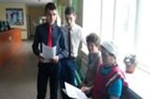 Акция "Доброволец в центре внимания". Одиннадцатиклассники рассказывают населению поселка о возможностях пользования сайтом государственных услуг.