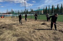 5 апреля обучающиеся нашей школы очистили от мусора и листвы территорию школы.